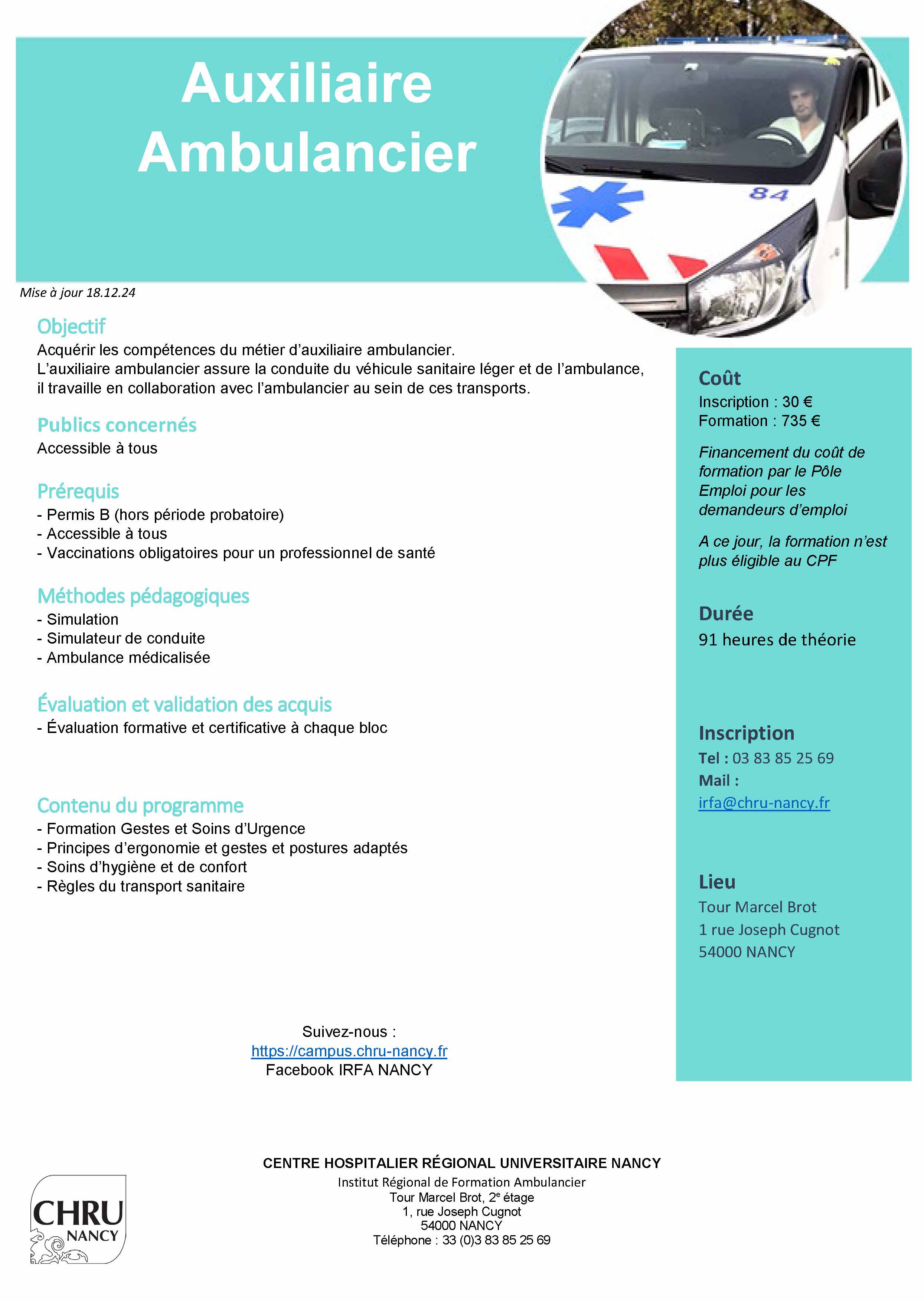 L’Institut Régional de Formation d’Ambulanciers (IRFA) du CHRU de Nancy est un organisme de formation public.